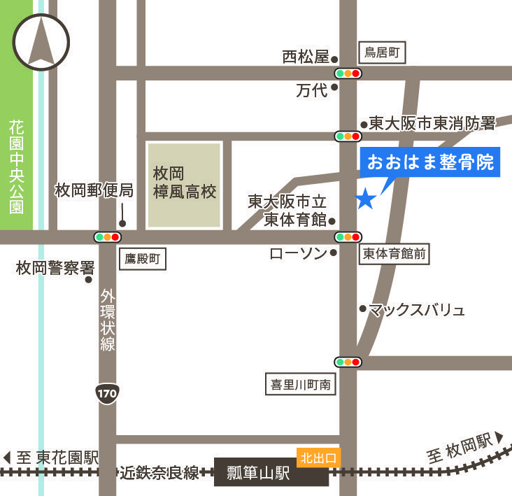 おおはま整骨院の院長の大濵です。当整骨院は瓢箪山駅から北に徒歩9分のとても通院しやすいところにあります。